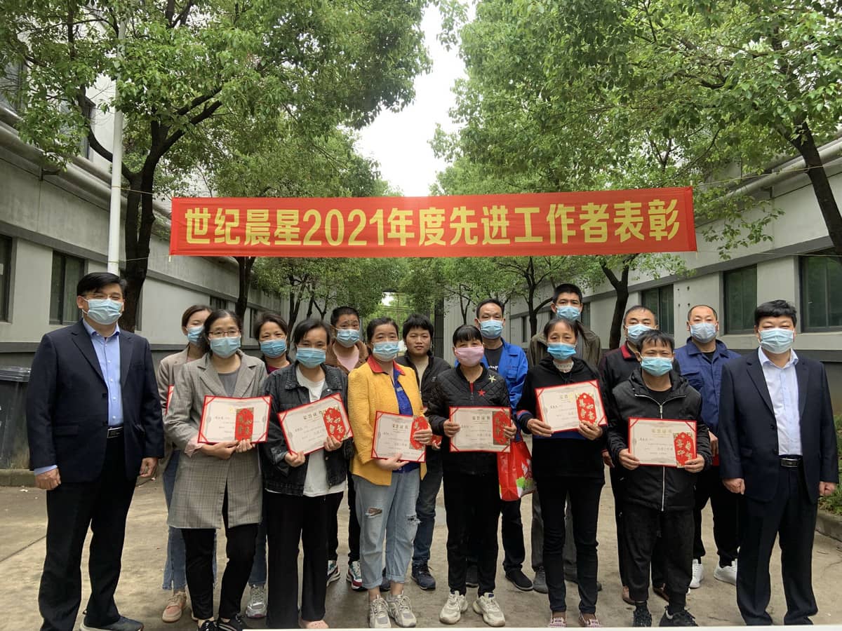Ráno 29. apríla usporiadala spoločnosť Zhejiang Century Morning Star Fiber Technology Co., Ltd. slávnostné uznanie pokročilých pracovníkov roku 2021. Pre epidémiu a iné dôvody pochvalnú konferenciu pochválila časť fabriky.