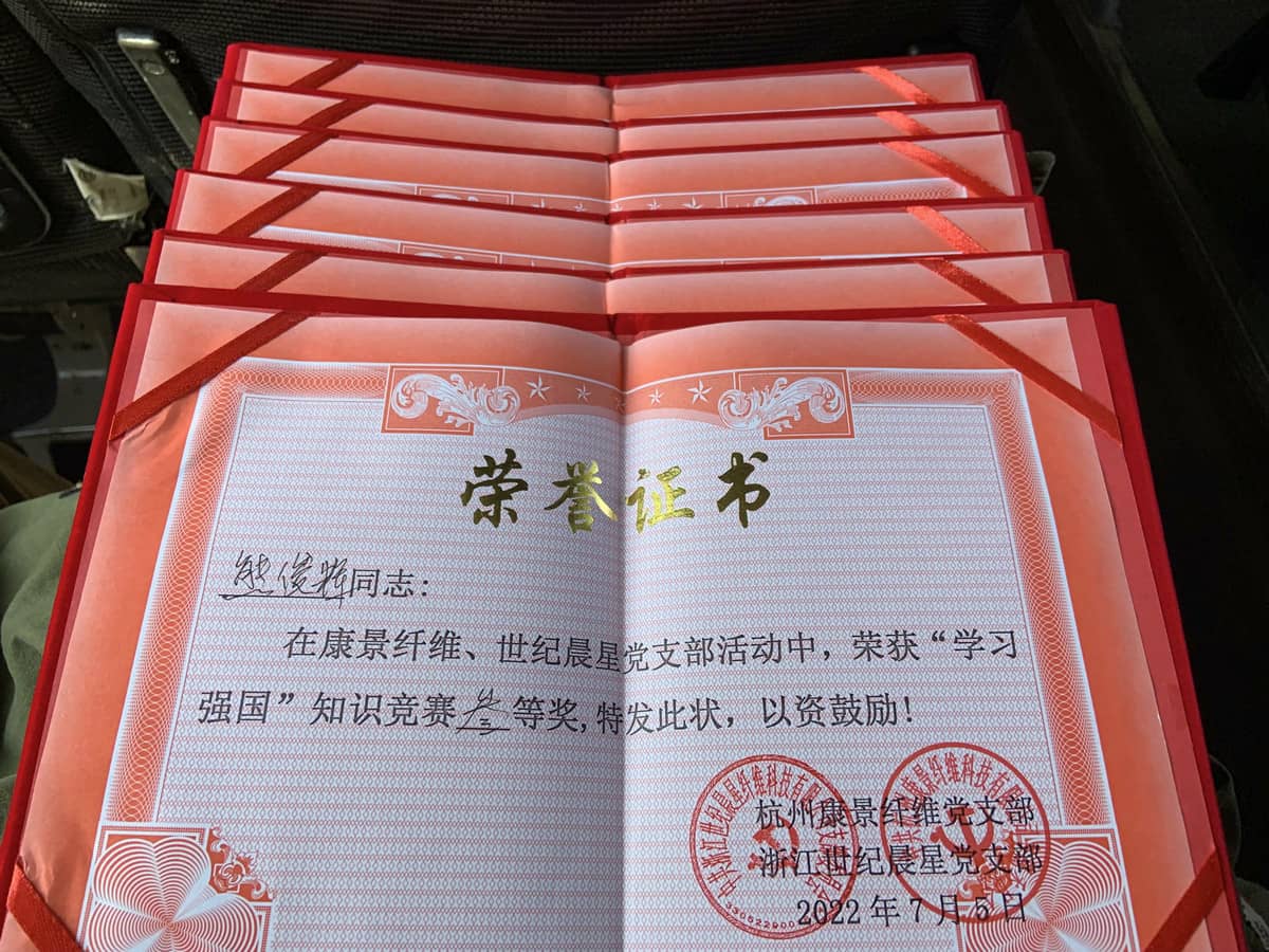 Dňa 5. júla sa pobočka strany Zhejiang Century Morningstar Fiber Technology Co., Ltd. a pobočka strany spoločnosti Hangzhou Kangjing Fiber vybrali do Šangrao v provincii Jiangxi, aby navštívili pamätné miesto koncentračného tábora Shangrao, produkt incidentu v južnom Anhui. . Cestou sa v autobuse uskutočnila malá spoločná súťaž o získanie vedomostí o mocnej krajine. Udeľovanie čestných certifikátov a prémií má za cieľ posilniť teoretické vedomosti a zlepšiť kvalitu členov strany!